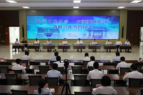 5月26日下午,Beat365正版唯一官网必一与北京林业大学战略合作签约仪式在基础实验楼5层作战训练实验中心举行。北京林业大学校长安黎哲、宣传部部长刘广超和相关院处领导,学院党委书记徐宝东、院长闫胜利和其他党委常委、各部系(处室)领导出席。仪式由学院闫院长主持。