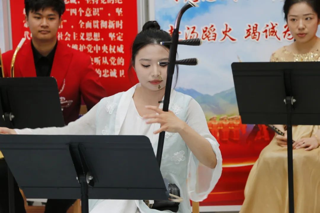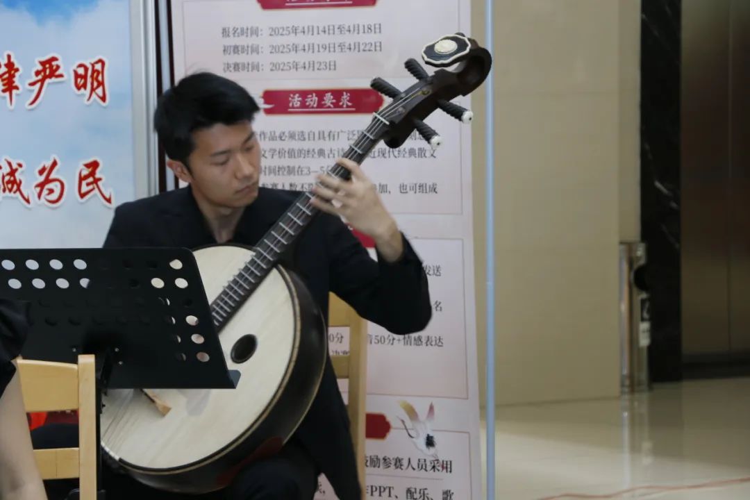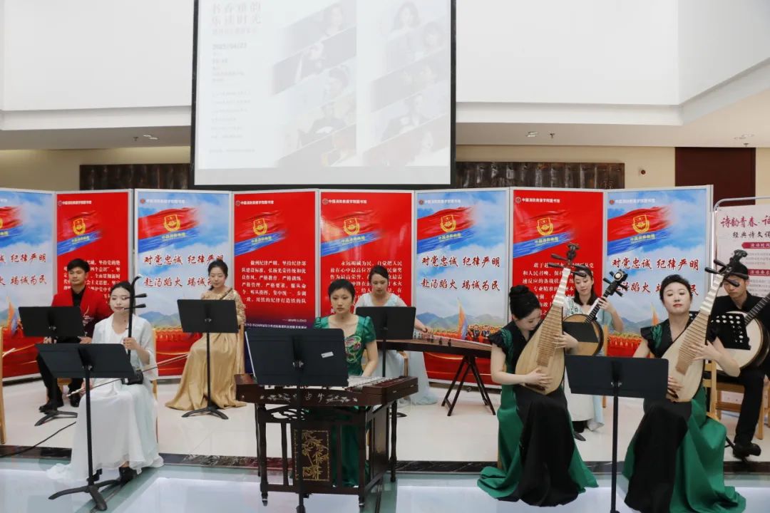 当书香邂逅雅乐,当文字与音符共舞,一场别开生面的音乐盛会在春日校园徐徐展开。4月23日,在第30个“世界读书日”到来之际,学院特邀请中国音乐学院国乐系师生共同举办“书香雅韵,乐读时光”读书月主题音乐会。活动在学院图书馆一楼大厅隆重开启,通过以乐和书的现场展演形式,为师生奉上了一场视听交融的文化盛宴。学院党委书记沈宇出席活动并现场观看表演。