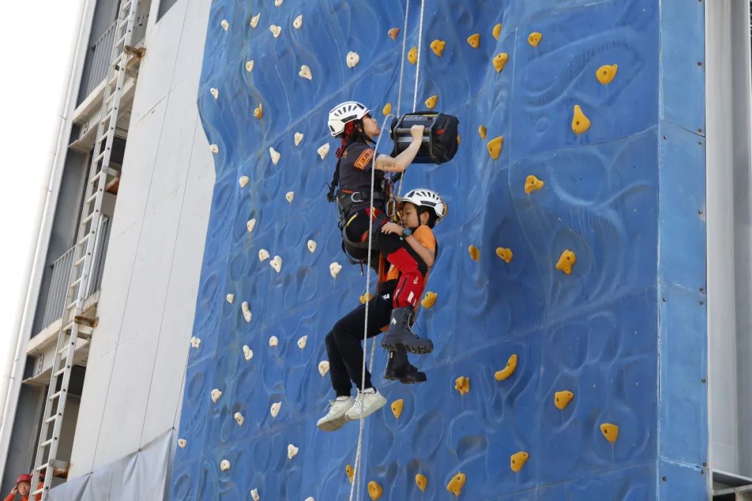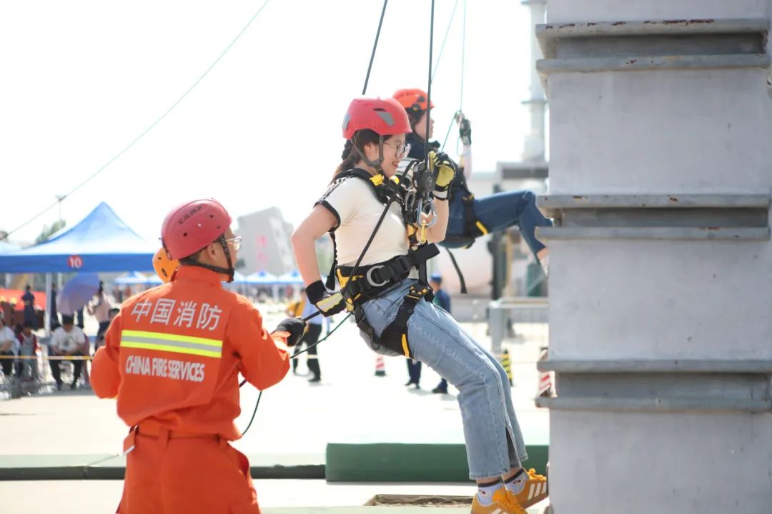 山岳和水域救援互动区域,不仅有高空索降带来的惊险刺激,岸上抛绳包、高精度破拆、医疗救护、心肺复苏等项目也让现场参与者直呼“过瘾”。
