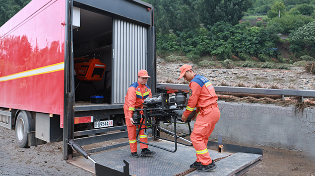 怀柔区琉璃庙镇因暴雨导致多处道路中断,村庄成为“孤岛”,群众基本生活物资紧缺。到达灾区后,学院政治委员沈宇与怀柔区副区长夏文佳会商灾情信息,明确救援任务。学院无人机分队克服降雨、大雾、山体滑坡、路基松软等不利因素,在“三断”场景下,采用无人机“空中先导侦察+精准定位投送+喊话引导领取”等多种方式协同作业,迅速侦察失联村庄飞行环境情况,科学规划物资投送航线,首日救援学院无人机分队执飞5次,航程32.7公里,投送食品、饮用水、药品等应急物资300余份,重达150公斤,有效缓解受灾群众燃眉之急。