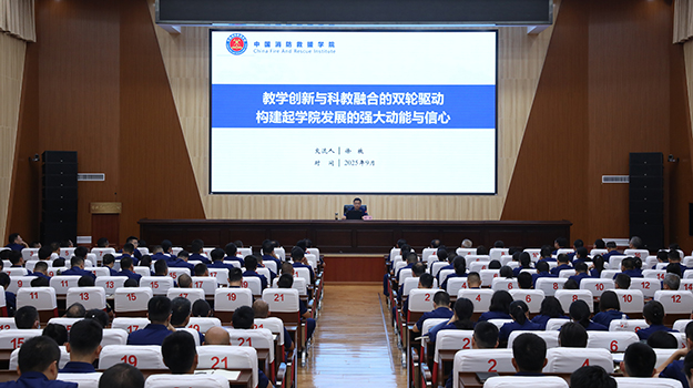 授课中,徐放院长从建设教育强国的本质属性和丰富内涵角度出发,结合教育的“三大属性”,深刻把握教育强国的“六大特质”,围绕教学主责主业提升、科教融合与科技创新、人才培养与教师发展和学科建设与发展等方面,强化以科技创新为牵引,突出“教研一体”双轮驱动,重点探讨了如何贯彻“立德树人”“以学生为中心”的教育理念,让教学推动科研、科研反哺教学,更好的培养高素质专业化消防救援人才。徐放院长号召全院干部教师进一步统一思想、凝聚共识,同向同行、锐意进取,努力把教育发展、科技创新、人才培养工作推向新高度,为教育强国建设和国家应急管理现代化建设做出新的贡献。