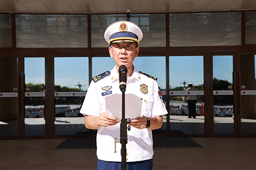贾靖副院长在动员讲话中强调,为期21天的训练意义重大,是新生迈入大学的“第一课”,是完成从地方青年向国家综合性消防救援队伍人员转变的“第一关”。全体新生要深刻认识其政治意义、成长意义及培育战斗精神的意义,以强烈的责任感、使命感和荣誉感全身心投入,深刻理解“为何而练”,为未来成长扣好第一粒扣子,践行“忠勇兼备,知行合一”的校训。抓好训练工作,一要树立“严、实、高”标准,锻造过硬本领作风。全面锻造“刀山敢上、火海敢闯”的血性胆魄和“召之即来、战之必胜”的过硬本领。二要全心投入训练,淬炼钢铁意志品质。以饱满的政治热情、昂扬的精神状态、严谨的训练态度,迎接意志与体能的锤炼、作风与纪律的洗礼。三要精诚团结协作,共筑安全高效氛围。牢固树立安全意识,严格遵守安全规定,科学施训确保质效,全面筑牢安全防线,全要素强化综合保障。