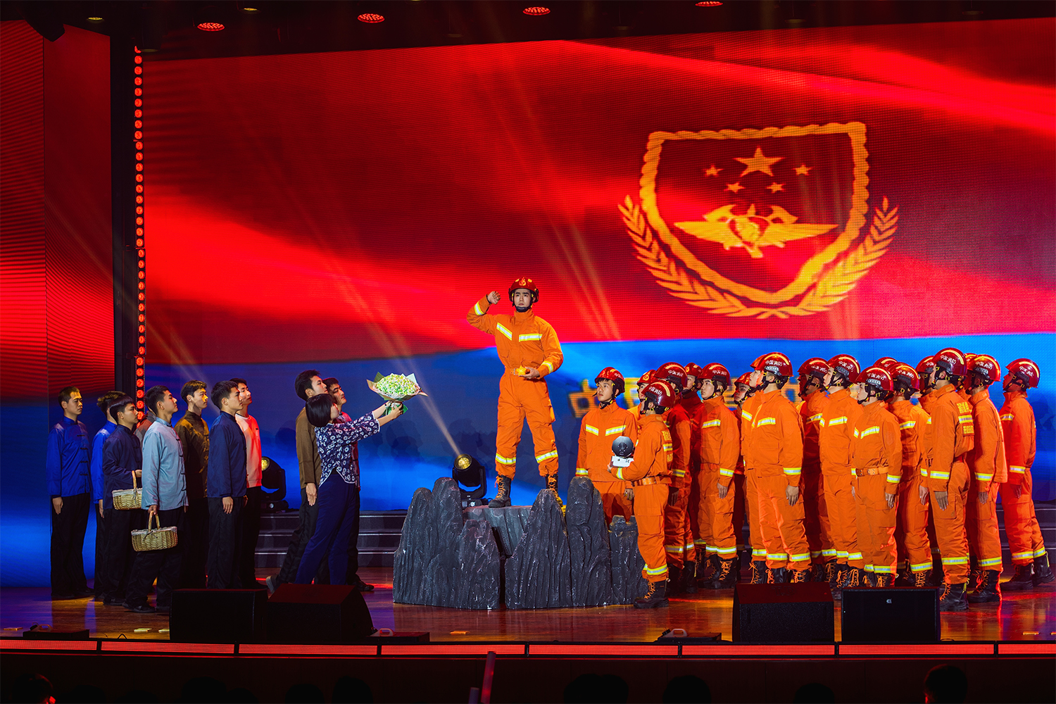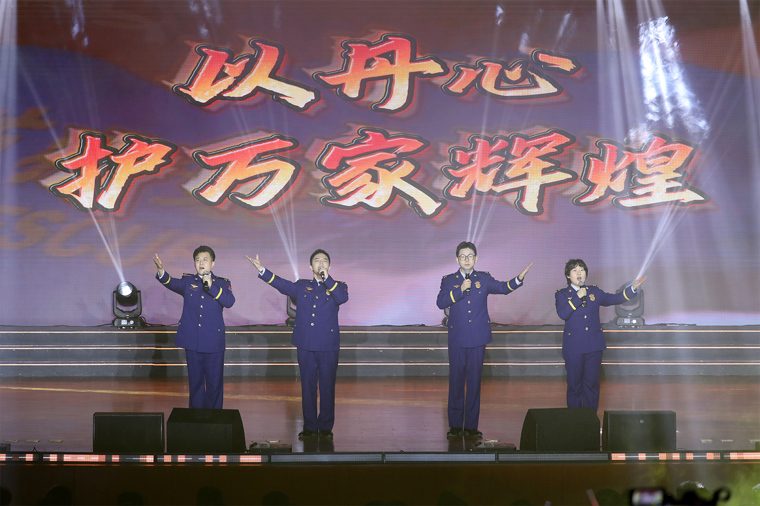 晚会震撼开场,蓝焰乐队以经典曲目《当》引爆全场。表演唱《大梦想家》《爱你》用青春洋溢的演绎,展现了消防学子追逐理想、朝气蓬勃的赤子情怀;原创歌曲《蓝焰清风》将校园生活与消防使命深度结合,以原创之力传递新时代消防青年的责任担当,成为学院文化创新的生动注脚;舞蹈剧《硬币的谎言》通过 12 名演员的精湛演绎传递正向价值观;民族舞《缘定萨玛志》由 15 名藏族学员倾情演绎,以浓郁的民族风情展现了藏族同胞对党忠诚、同心同行的深厚情谊;歌伴舞《光亮》以优美舞姿与嘹亮歌声,诠释了消防人在追梦路上的坚守与奋进。节目紧扣青年成长与初心使命,将美育浸润融入艺术表达,让战斗精神在文化熏陶中落地生根。