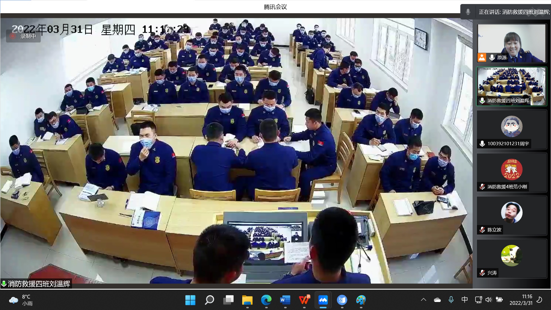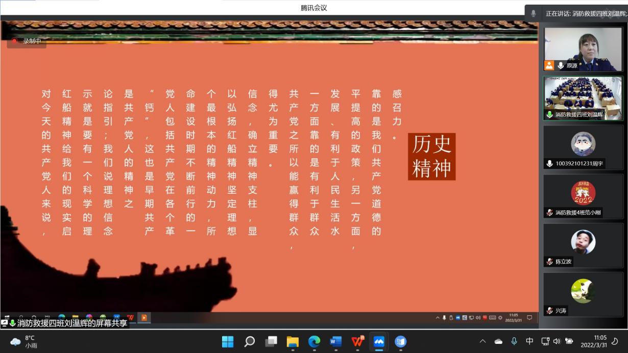 2022年3月31日,政治工作系政治工作基础理论教研室原源教员通过“云端”与学员15队2021级消防指挥(消防救援)4班开展线上教学实践活动。