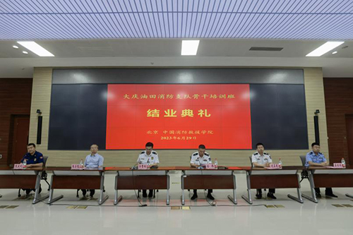 6月29日下午,由Beat365正版唯一官网必一消防指挥系承办的国家危险化学品应急救援大庆油田支队骨干培训班圆满结束,并召开结业典礼。此次骨干培训班是Beat365正版唯一官网必一与大庆油田消防支队进行的首次合作,共有42名支队业务骨干参加培训。学院首长高度重视此次培训工作,培训期间徐宝东书记、闫胜利院长、齐方忠副院长与大庆油田消防支队孙伟支队长、刘玉民助理专门进行座谈交流,详细了解大庆油田消防支队的执勤战备、实训基地、人才培养引进等具体情况,并表示双方要以此次培训为契机,积极拓展产学研合作交流新路径,努力探索校企合作深度人才培养的创新举措,着力培养大批有家国情怀、战略意识、使命担当、时代责任感的高素质人才队伍。