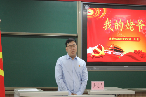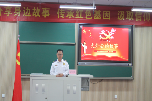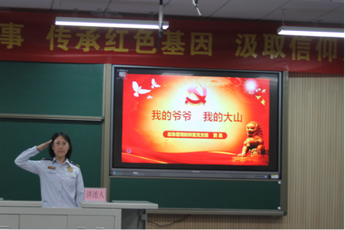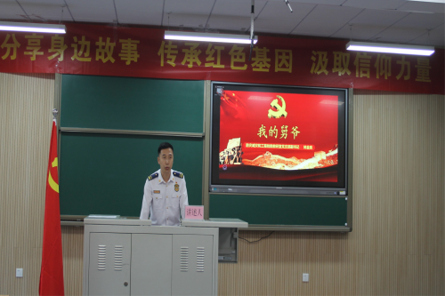 张志国同志向我们讲述了自己的大外公,一位“为求解放去当兵,保家卫国又出征,一方手帕寄深情,勤俭大爱过余生”的无产阶级斗士。“作为一名党员干部,要在传承和学习中坚定红色信仰,在与时俱进中牢记初心,在艰苦奋斗中勇担使命”。
