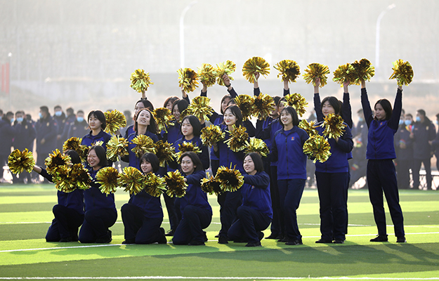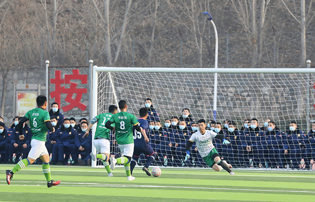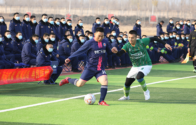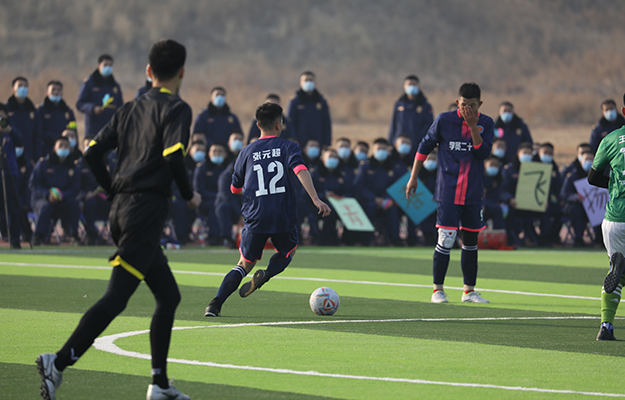 学员14队热舞开场,16支观赛方队、1300余名学员化身啦啦队员为比赛呐喊助威。强强相遇、精彩纷呈。赛场上,足球时而高高飞起,时而突破前行,承载着双方球员必胜的决心和意志。第20分钟,22队前锋在对方防守球员包夹中盘带突破,连过3人巧妙推射破门。