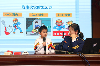 在第32个全国“119”消防日前夕,学院“共建平安校园”特色品牌走进昌平区城北小学教育集团三街校区“养正讲堂”开展消防科普活动。此次活动,学院消防工程系杨玲副教授以“学一分消防知识 多十分安全保障”为主题,为在校低年级学生普及消防基本常识、讲授火灾逃生技巧。