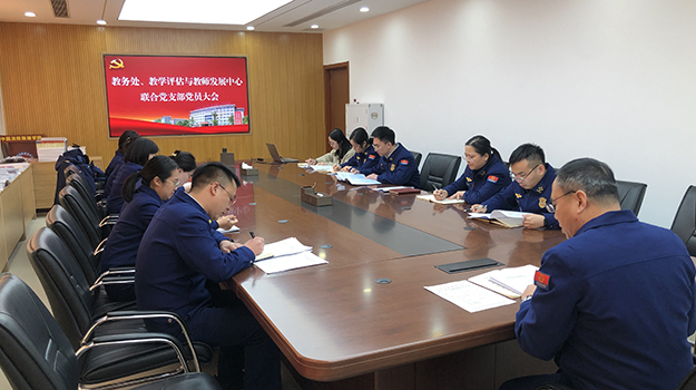 1月10日下午,教务处、教学评估与教师发展中心联合党支部召开党员大会,第一时间传达学习学院第一次党代会精神,研究部署贯彻落实工作。会议由党支部书记任振华主持。