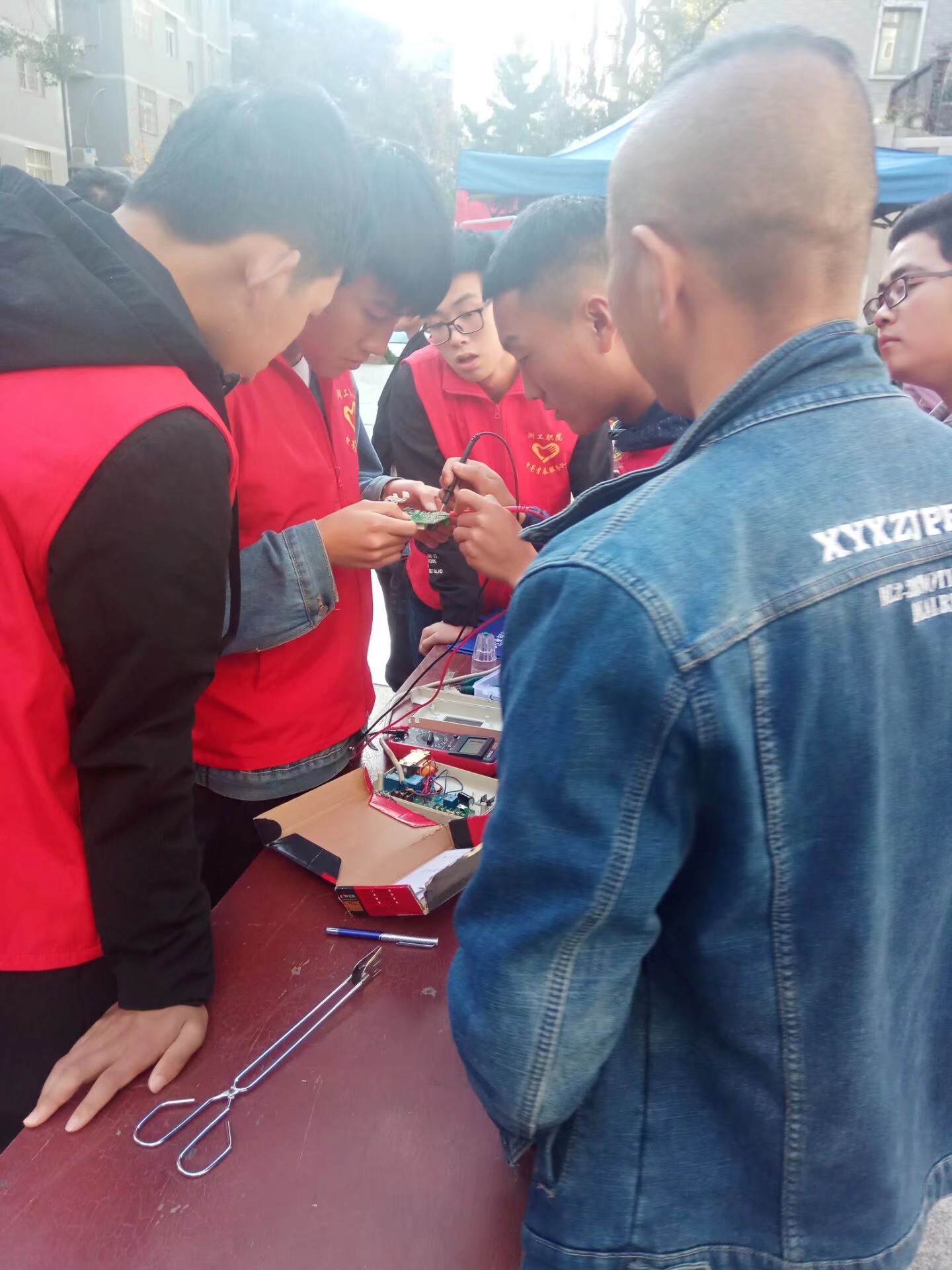 此次活动共有30名志愿者参加,由10名大二志愿者和20名大一志愿者组成。活动开始后大家分工,有的志愿者做维修、有的志愿者前往居民家中为其解决一些电器小问题、还有一部分志愿者在小区里捡垃圾。在志愿服务过程中,志愿者们还向社区居民发放了创文宣传手册、宣讲创文小知识,每一位志愿者都认真细致的做着自己力所能及的事情。