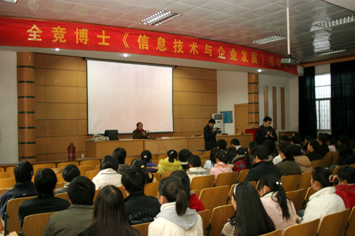 新闻网讯 (记者 古月 学生记者 王攀 叶高峰 王少青)1月2日下午,金年会学术报告厅座无虚席。旅美华人全竞博士主讲的《信息技术与企业发展》学术报告吸引着大家。