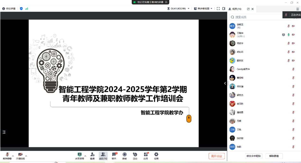 新闻网讯(通讯员 王雅坤)为进一步提升青年教师及兼职教师的教学能力与职业素养,规范教学管理流程,金年会jinnianhuicom于近日组织召开了2024-2025学年第2学期青年教师及兼职教师培训会。本次培训会聚焦师德师风建设、院系管理规范及教学材料编写三大主题,旨在为青年教师及兼职教师提供全面指导,助力学院教育教学高质量发展。