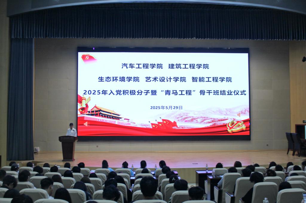 新闻网讯(文/徐丽 图/曾喜军)5月29日下午,金年会jinnianhuicom联合汽车工程学院、建筑工程学院、生态环境学院、艺术设计学院在和山会堂举办了2025年入党积极分子暨“青马工程”骨干班结业仪式。