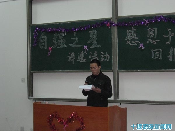 评选活动上,十名自强之星候选人讲述了他们自强的心路历程,讲述了自己面对贫寒的家庭,在困难面前如何做到自立自强,展示了当今大学生积极乐观、奋发自强的精神风貌。他们表示一定要珍惜在学校学习的时光,努力学习,奋发图强,用优异的成绩回报所有帮助和关心自己的人。他们激情的演讲催人泪下,感人肺腑,在场的全体师生们用掌声给予了他们支持和鼓励。经过评委们的认真评判,最终有六名自强之星分获一、二、三等奖,系领导为他们颁发了荣誉证书。