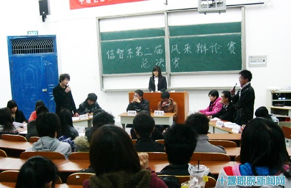 新闻网讯 (学生记者 陈小娥  通讯员 张晶  郑方燕为培养学生敏捷的思辨能力、良好的语言表达能力、扎实的写作基础以及团队合作精神。45日晚,信息与智能工程系第二届风采辩论赛总决赛在4101教室精彩上演。系党总支副书记莫足琴、系辅导员和全系同学观摩了本次辩论赛。