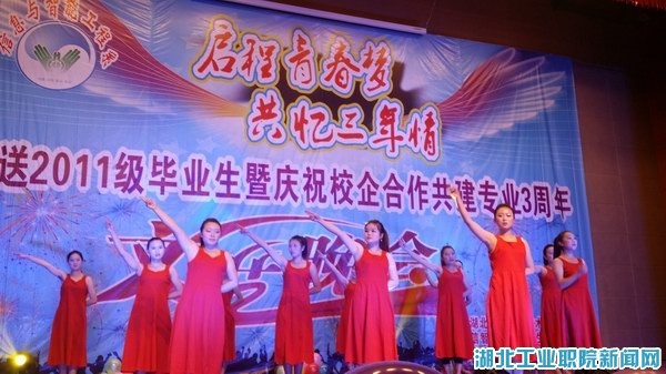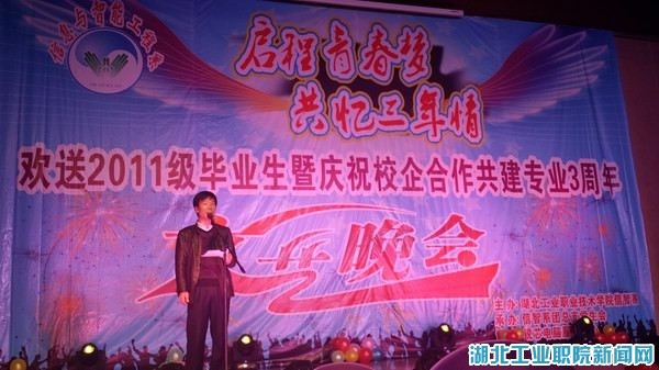 新闻网讯(通讯员 黄召阳 谢竹1126日晚,学院会议中心座无虚席,信息与智能工程系全体师生欢聚一堂,在这里举办了以“启程青春梦,共忆三年情”为主题的文艺晚会,欢送2011级毕业生顶岗实习并庆祝校企合作共建专业3周年。十堰开心文化传媒有限公司和锐芯电脑服务中心协办了此次晚会。