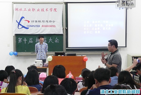 新闻网讯(学生记者 沈碧 代贤超 孙亮58日晚计算机协会在4101教室举行表彰先进暨换届选举大会。信息与智能工程系党总支书记莫足琴、计算机协会指导老师马康、系辅导员龚国钧,郑丽琼,部分社团干部和全体大一学生参加了此次会议。