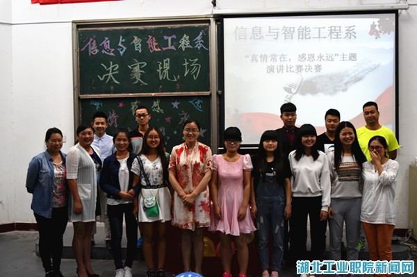 新闻网讯(学生记者 向青 谢海鸥)为弘扬传统美德,让同学们心怀感恩之心,531日晚六点半,信息与智能工程系在四号教学楼4101教室举办以感恩为主题的演讲比赛。该系党总支书记莫足琴、校企共建专业学工办主任曹艳及辅导员和该系大一学生、学生干部观看了本次决赛。
