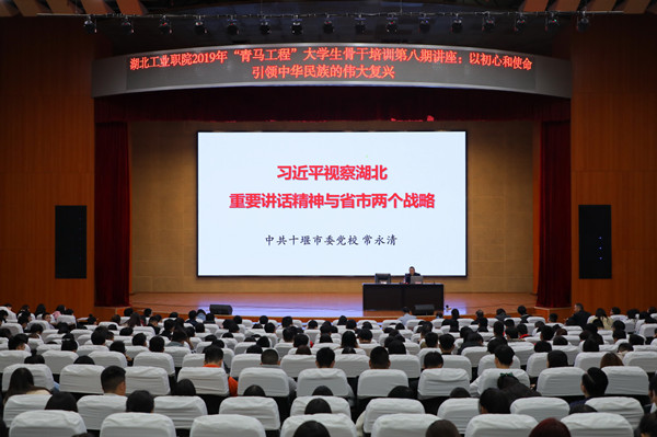 常永清教授现任中共十堰市委党校副校长,是湖北省干部教育培训优秀教师,湖北省社情民意专家组成员,十堰市专业技术拔尖人才,十堰市特殊津贴专家,湖北省社科系统理论宣讲员,十堰市委历次宣讲团主要成员。长期立足十堰经济社会发展,开展专题的调研与研究,为我市多个重点项目和相关部门的工作提供决策依据,多次获得省部级社会科学成果奖、市级成果奖。常永清的精彩讲座赢得了在场师生的阵阵掌声,让与会师生对国情、省情、市情有了更加深入的了解,特别是对湖北省、十堰市的发展战略有了全面的认识。