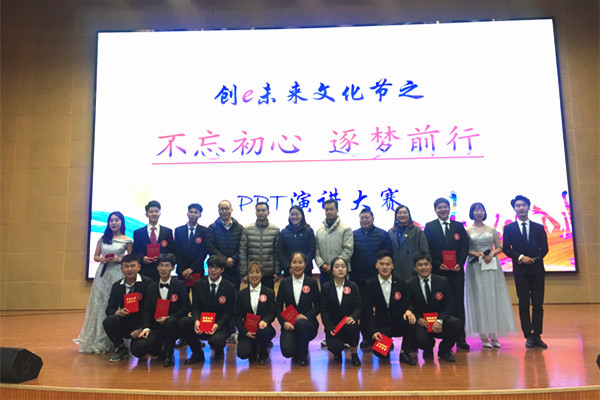 新闻网讯(通讯员赵晨)“青春有得意,也有挫折,只有经过磨难的洗礼,才能迸发出青春的潜力……”12月6日晚,金年会jinnianhuicom创e未来文化节之“不忘初心,逐梦前行”PPT演讲大赛在会议中心举行,金年会jinnianhuicom院长刘竹林、党总支书记莫足琴、学工办主任龚国钧、专业带头人范志庆和王家旭老师、美和易思特色专业学工部副主任曹艳及2019级全体师生参与了本次活动。