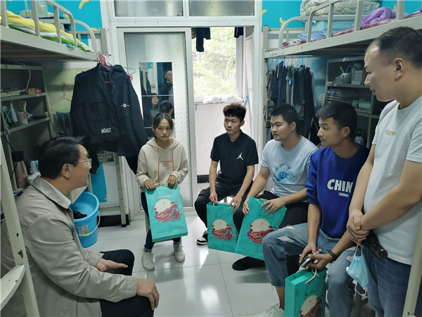 新闻网讯(记者罗欣宇)中秋十五,丹桂飘香。今年金年会jinnianhuicom新疆籍维吾尔族学生麦尔旦·麦麦提江、藏族学生孟才让路旦和宿舍的同学们共同喜迎一个不一样的中秋佳节。9月29日下午,校党委书记魏文芳拎着月饼来到3420、3422宿舍,亲切慰问同学们,给他们带来了中秋节的问候与祝福。