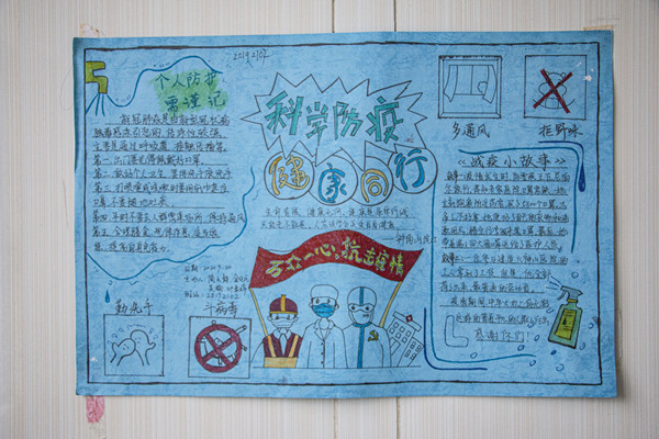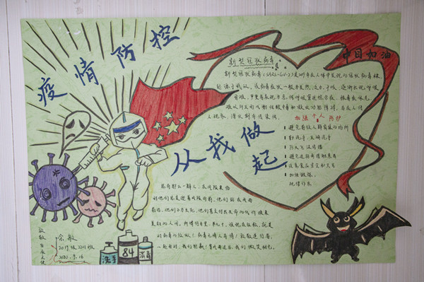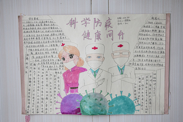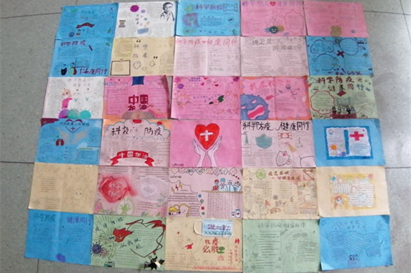 同学们通过自己在疫情期间的所见、所闻、所感,从不同的视角用心用情创作出一幅幅温暖画作。手抄报内容丰富、图文并茂,涵盖了知识宣讲、感恩祖国、致敬英雄等多个内容。同学们以真情实感的文字和温暖感人的照片,表达了对一线抗疫工作者的崇高敬意。