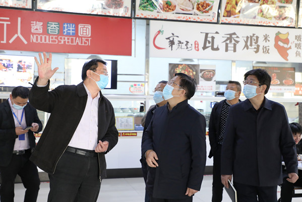 此次安稳例会以现场办公会的形式开展,郑昕一行先后来到学生食堂、学生宿舍、校企合作企业、建设项目工地,详细排查安全隐患,现场督导安全生产和疫情防控等工作。