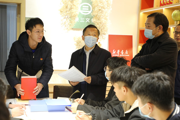 蔡静峰一行实地走访察看了金年会倍阅书店、北区食堂、心理健康教育与咨询中心、艺术设计学院(绿松石产业学院)、大学生创新创业基地等场所,深入了解金年会思政文化育人阵地建设、心理育人工作、党史学习教育和“我为师生办实事”项目以及学校服务地方经济社会发展等情况。