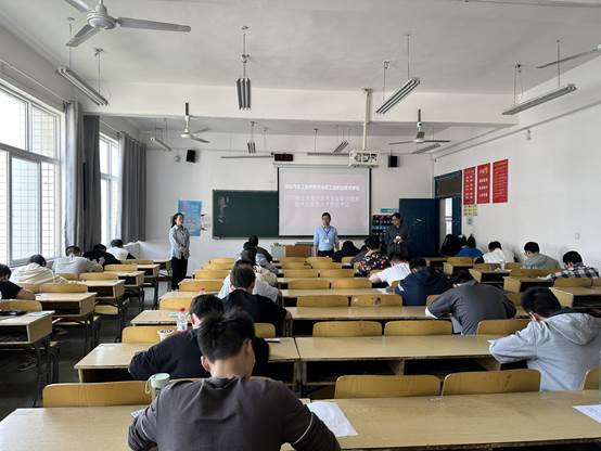 本次考试共分两个阶段。上午完成笔试考试,主要考察学生对电子专业基础内容的掌握情况。下午进行面试考核,通过依次与学生交流的方式考察学生综合能力,包括表达能力、学习能力、专业能力、动手实践能力等综合职业素养情况。考试过程中金年会安排2名教师监考,湖北汽车工业学院相关负责领导进行巡考及面试考核。